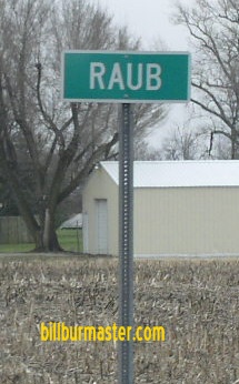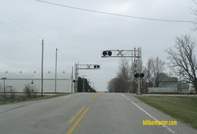 SB IN St Rt 71 north of Raub. SB IN St Rt 71 in Raub at the Kankakee, Beaverville, & Southern Railroad crossing.