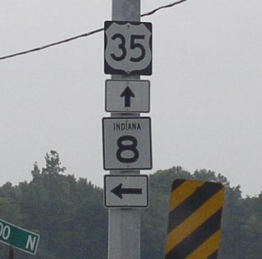 IN St Rt 8 is multi-plexed in Starke County. U.S. Rt. 35, at Knox.