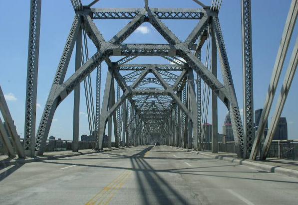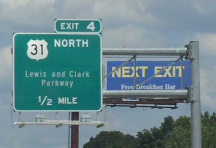 A BGS on NB I-65/U.S. Rt. 31. A BGS in Jeffersonville. A set of guide markers in Jeffersonville. SB U.S. Rt. 31 near the Ohio River. SB U.S. Rt. 31 at the pillars on the Indiana side of the river. NOTE: The older shield. SB U.S. Rt. 31 at the Ohio River. SB U.S. Rt. 31 crossing the Ohio River.