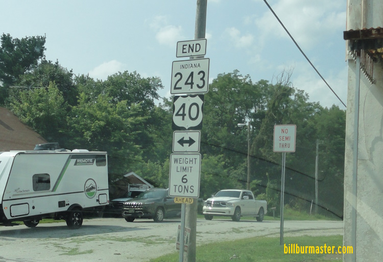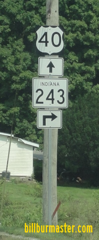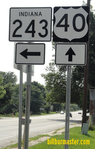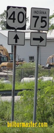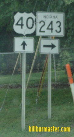 EB U.S. Rt. 40 at the Clay/Putnam County Line. EB U.S. Rt. 40 west of Reelsville. EB U.S. Rt. 40 east of Reelsville. EB U.S. Rt. 40 at Manhattan. EB U.S. Rt. 40 east of Manhattan. EB U.S. Rt. 40 west of Putnamville. A guide marker on NB IN St Rt 243. EB U.S. Rt. 40 eat of Putnamville. EB U.S. Rt. 40 at IN St Rt 75. EB U.S. Rt. 40 east of IN St Rt 75.