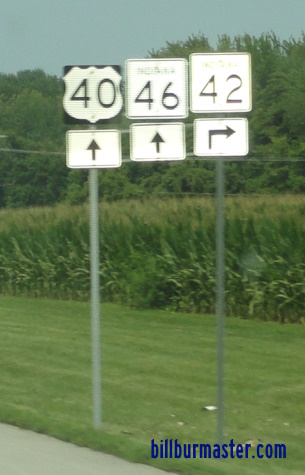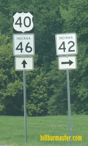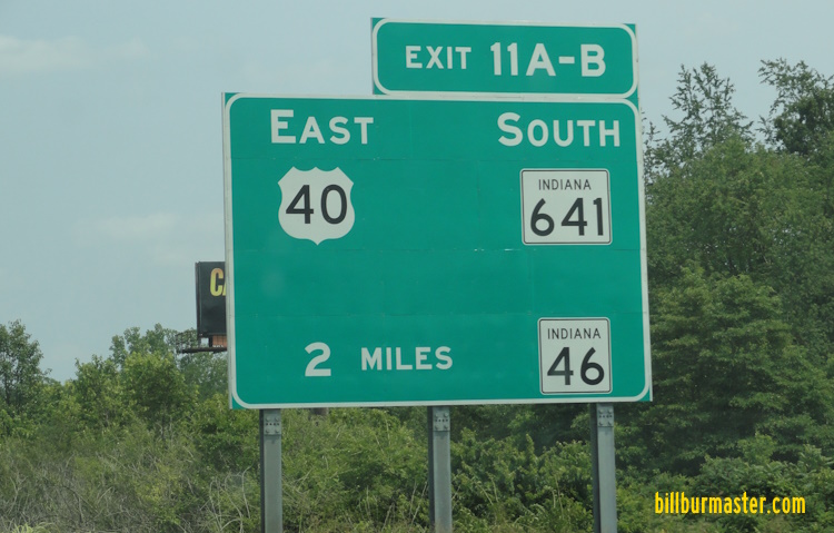 EB I-70/U.S. Rt. 40 at the Indiana/Illinois State Line. A BGS on EB I-70/U.S. Rt. 40. EB I-70/U.S. Rt. 40 at National Ave. EB I-70/U.S. Rt. 40 at the Indiana Welcome Sign. WB I-70/U.S. Rt. 40 west of Darwin Road. EB I-70/U.S. Rt. 40 east of Darwin Road. WB I-70/U.S. Rt. 40 east of Darwin Road. WB I-70/U.S. Rt. 40 west of U.S. Rt. 41/150. EB I-70/U.S. Rt. 40 west of U.S. Rt. 41/150. A junction marker on NB U.S. Rt. 41/WB U.S. Rt. 150. A guide marker on NB U.S. Rt. 41/WB U.S. Rt. 150. A guide marker on NB U.S. Rt. 41/WB U.S. Rt. 150. A guide marker on NB U.S. Rt. 41/WB U.S. Rt. 150. A guide marker in Terre Haute. EB I-70/U.S. Rt. 40 east of U.S. Rt. 41/150. EB I-70/U.S. Rt. 40 at IN St Rt 46/641. A BGS on EB I-70/U.S. Rt. 40. A BGS on EB I-70/U.S. Rt. 40. A BGS on EB I-70/U.S. Rt. 40. A BGS on NB IN St Rt 641. EB U.S. Rt. 40/WB IN St Rt 46/NB IN St Rt 641 at I-70. EB U.S. Rt. 40/WB IN St Rt 46/NB IN St Rt 641 under I-70. A set of guide markers on EB U.S. Rt. 40/WB IN St Rt 46. EB U.S. Rt. 40/WB IN St Rt 46 at IN St Rt 42. A guide marker on WB IN St Rt 42. EB I.S. Rt. 40/WB IN St Rt 46 at Wabash Ave. A guide marker on EB U.S. Rt. 40. A junction marker on WB IN St Rt 46. EB U.S. Rt. 40 near East Glenn. EB U.S. Rt. 40 in East Glenn.