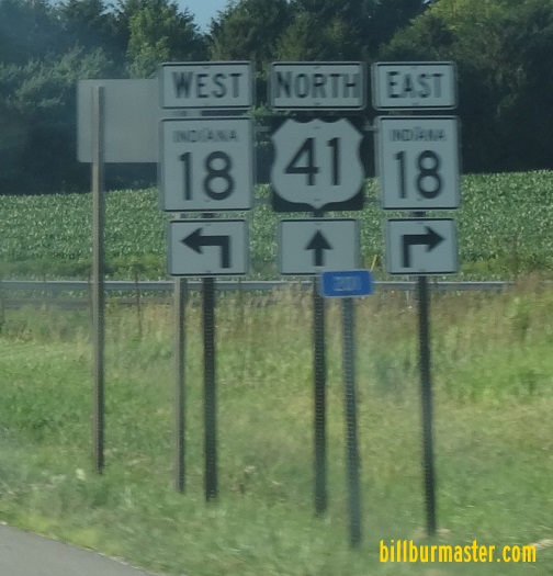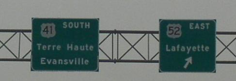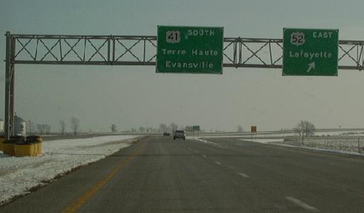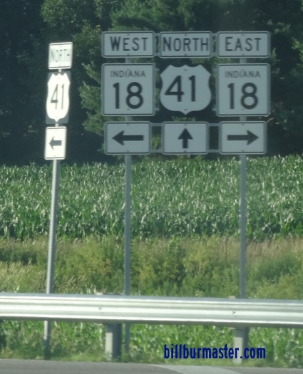 SB U.S. Rt. 41/EB U.S. Rt. 52 at the Newton/Benton County Line. SB U.S. Rt. 41/EB U.S. Rt. 52 near Gravel Hill. NB U.S. Rt. 41/WB U.S. Rt. 52 north of their interchange near Gravel Hill. NB U.S. Rt. 41/WB U.S. Rt. 52 north of the Gravel Hill Interchange. SB U.S. Rt. 41/EB U.S. Rt. 52 near their junction near Gravel Hill. SB U.S. Rt. 41 at U.S. Rt. 52 near Gravel Hill. SB U.S. Rt. 41 at U.S. Rt. 52 near Gravel Hill. Junction marker on WB U.S. Rt. 52. NB U.S. Rt. 41 at U.S. Rt. 52. SB U.S. Rt. 41 south of U.S. Rt. 52. NB U.S. Rt. 41 north of IN St Rt 18. NB U.S. Rt. 41 at IN St Rt 18. NB U.S. Rt. 41 south of IN St Rt 18. SB U.S. Rt. 41 south of IN St Rt 18. NB U.S. Rt. 41 north of Boswell. SB U.S. Rt. 41 south of IN St Rt 352. SB U.S. Rt. 41 south of Boswell. NB U.S. Rt. 41 south of Boswell.