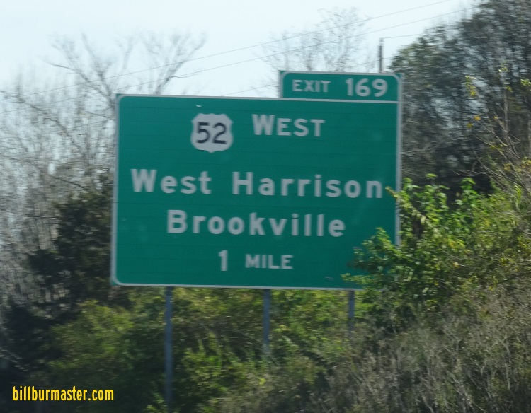 A BGS on EB I-74. EB I-74/U.S. Rt. 52 east of U.S. Rt. 52. EB I-74/U.S. Rt. 52 west of the Ohio State Line. WB I-74/U.S. Rt. 52 at the Indian Welcome Sign.