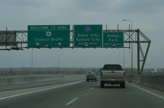 NB IA 81 near Farmington. (September, 2011) | EB I-480, at Council Bluffs. (April, 2004) | WB U.S. 136, Keokuk. (June, 2010) |