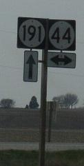 NB IA St Rt 191 north of Portsmouth. A junction marker on WB IA St Rt 44. SB IA St Rt 191 south of Portsmouth.