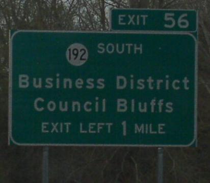 Iowa State Route 192 is a north-south highway in Council Bluffs. This highway runs from Interstate 29, south to Interstate 29/80, via the city's business district. IA St Rt 192 passes thorugh the following town in Pottawattamie County. Council Bluffs