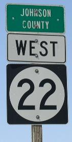 Looking west along IA St Rt 22 at the Johnson/Muscatine County Line. Looking west along IA St Rt 22, just west of IA St Rt 405.