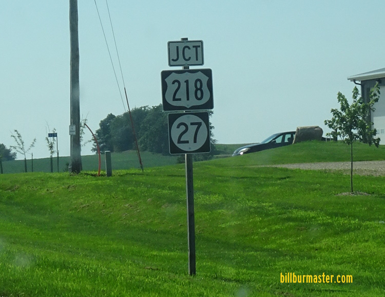 NB U.S. Rt. 218/IA St Rt 27 north of BCH C13. NB U.S. Rt. 218/IA St Rt 27 south of BCH C13. SB U.S. Rt. 218/IA St Rt 27 north of Plainfield. NB U.S. Rt. 218/IA St Rt 27 north of IA St Rt 188. NB U.S. Rt. 218/IA St Rt 27 south IA St Rt 188. SB U.S. Rt. 218/IA St Rt 27 south of Plainfield. NB U.S. Rt. 218/IA St Rt 27 south of Plainfield. NB U.S. Rt. 218/IA St Rt 27 north of BCH C33. NB U.S. Rt. 218/IA St Rt 27 at BCH C33. NB U.S. Rt. 218/IA St Rt 27 north of BUSN U.S. Rt. 218, north of Waverly. A junction marker on NB U.S. Rt. 218/IA St Rt 27. SB U.S. Rt. 218/IA St Rt 27 near Waverly. NB U.S. Rt. 218/IA St Rt 27 south of Waverly. NB U.S. Rt. 218/IA St Rt 27 north of Janesville. NB U.S. Rt. 218/IA St Rt 27 at the Cedar River. SB U.S. Rt. 218/IA St Rt 27 near Janesville. NB U.S. Rt. 218/IA St Rt 27 at BCH C50.