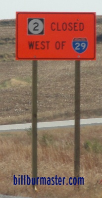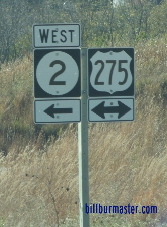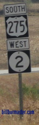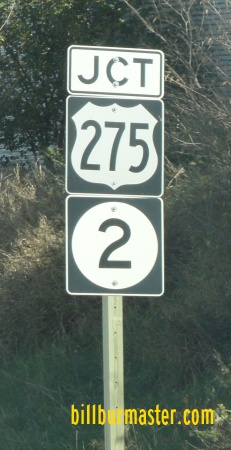 WB IA St Rt 2 east of Sidney. WB IA St Rt 2 near U.S. Rt. 275. In late 2011, IA St Rt 2 was closed due to the flooding of the Missouri River. A junction marker in Sidney. BGS on NB I-29.