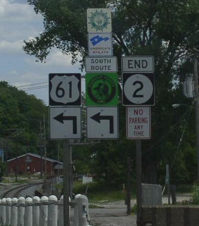 IA St Rt 2 is multi-plexed in Lee County. U.S. Rt. 61, at Fort Madison.