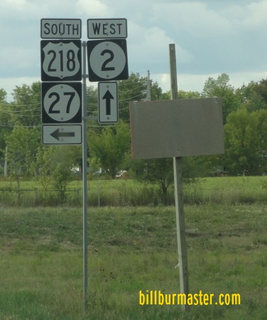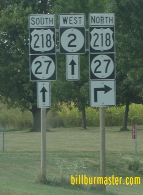 The eastern end marker. A junction marker on SB U.S. Rt. 61. SB U.S. Rt. 61/WB IA St Rt 2 in Fort Madison. A BGS on SB U.S. Rt. 61/WB IA St Rt 2. WB IA St Rt 2 west of Ft. Madison. WB IA St Rt 2 at U.S. Rt. 218/IA St Rt 27. WB IA St Rt 2 west of Donnellson. WB IA St Rt 2 near the Van Buren/Lee County Line.