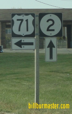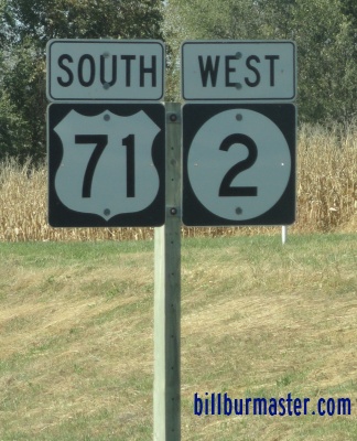 Shenandoah IA St Rt 2 is multi-plexed in Page County. U.S. Rt. 71, near Clarinda.