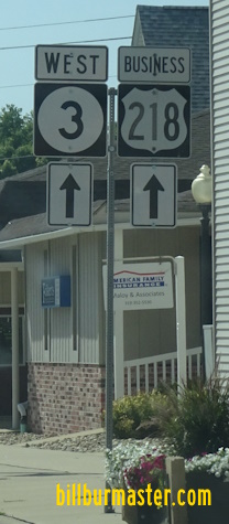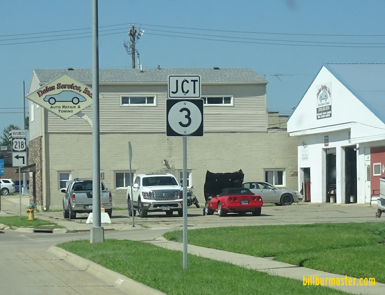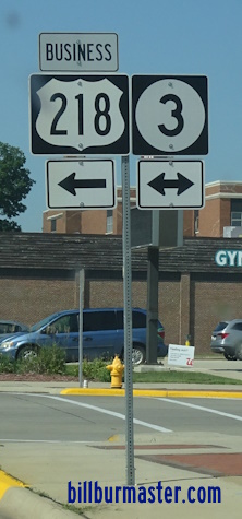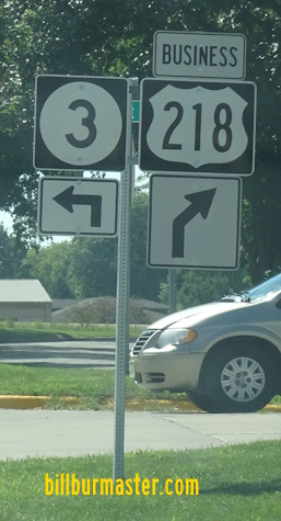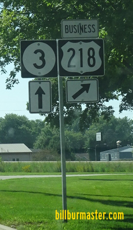 IA St Rt 3 is multi-plexed in Bremer County. BUSN U.S. Rt. 218, at Waverly.