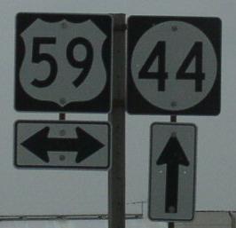 IA St Rt 44 is not multi-plexed in Shelby County. IA St Rt 44 intersects the following highways in Shelby County. U.S. Rt. 59, at Harlan.