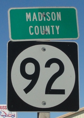 Iowa State Route 92 is the major east-west highway across Central Madison County. It runs from the Madison/Warren County Line, at Bevington, to the Madison/Adair County Line, near Macksburg. IA St Rt 92 passes through the following towns in Madison County. Bevington