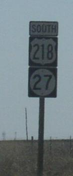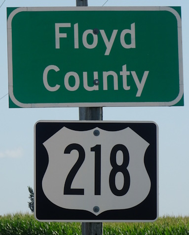 Branches of U.S. Rt. 218 in Floyd County. A junction marker on EB U.S. Rt. 18/SB IA St Rt 27. EB U.S. Rt. 18; SB U.S. Rt. 218/IA St Rt 27 north of Charles City. A junction marker on NB BUSN U.S. Rt. 218. A set of guide markers on a ramp from EB U.S. Rt. 18; SB U.S. Rt. 218/IA St Rt 27. EB U.S. Rt. 18; SB U.S. Rt. 218/IA St Rt 27 near Charles City. SB U.S. Rt. 218/IA St Rt 27 south of Charles City. NB U.S. Rt. 218/IA St Rt 27 near Midway. A BGS on WB U.S. Rt. 18; NB U.S. Rt. 218/IA St Rt 27. A BGS on WB U.S. Rt. 18; NB U.S. Rt. 218/IA St Rt 27. WB U.S. Rt. 18; NB U.S. Rt. 218/IA St Rt 27 at Floyd. NB U.S. Rt. 218 north of U.S. Rt. 18/IA St Rt 27. NB U.S. Rt. 218 north of 3rd in Floyd. NB U.S. Rt. 218 at the Cedar River. NB U.S. Rt. 218 north of Floyd. SB U.S. Rt. 218 at the Floyd/Mitchell County Line.