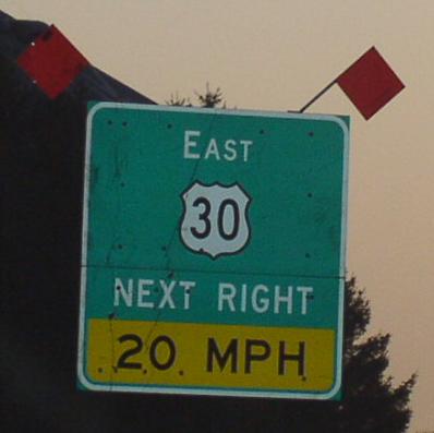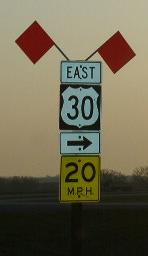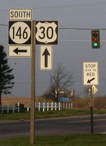 Branches of U.S. Rt. 30 in Marshall County. A BGS on NB IA St Rt 330. A guide marker on NB IA St Rt 330. A guide marker on WB BUSN U.S. Rt. 30. Looking west along the new section for the EB lanes of U.S. Rt. 30 at Marshall County Highway T31. (April 12, 2004) Looking west along U.S. Rt. 30 at the current end of the new four-lane at-grade highway, near Le Grand. The new EB lanes are not open yet. From the left-to-right; Left-Future EB Lanes, Right-Future WB Lanes/Current U.S. Rt. 30. (April 12th, 2004) A junction marker on NB IA St Rt 146.