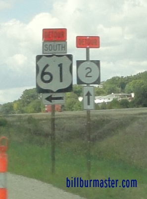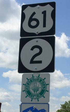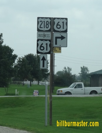 U.S. Rt. 61 is multi-plexed in Lee County. Iowa State Route 2, at Fort Madison.