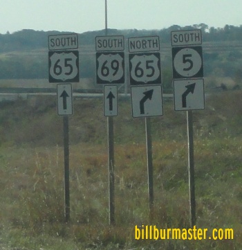 U.S. Rt. 69 is multi-plexed in Warren County. U.S. Rt. 65, from Des Moines to near Indianola.