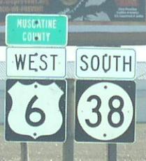 U.S. Federal Route 6 is the main east-west surface highway in Northern Muscatine County. U.S. Rt. 6 passes through the following towns in Muscatine County. Wilton Atalissa West Liberty U.S. Rt. 6 is multi-plexed in Muscatine County. Iowa State Route 38, from the Cedar/Muscatine County Line to near Wilton.