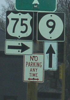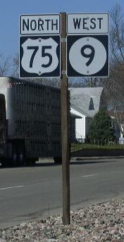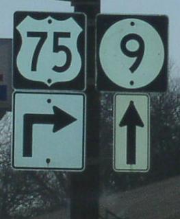 U.S. Rt. 75 intersects the following highways in Lyon County. Iowa State Route 9, at Rock Rapids.
