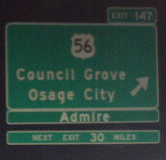 U.S. Federal Route 56 is a east-west highway in Northern Lyons County. This is the main highway in this portion of the county. U.S. Rt. 56 passes through the following town in Lyons County. Allen U.S. Rt. 56 is not multi-plexed in Lyons County. U.S. Rt. 56 intersects the following highways in Lyons County. Kansas State Route 99, near Admire. Interstate 335, near Osage City. Kansas Turnpike, near Osage City. Kansas State Route 78, near Osage City.