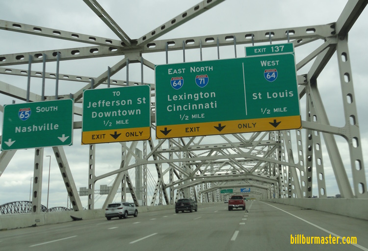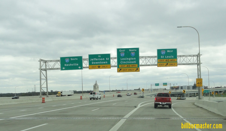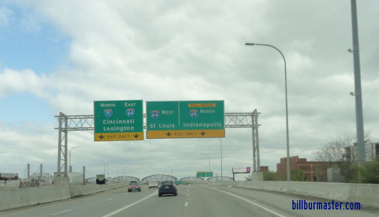 SB I-65 a half mile from I-64/71. (April, 2022)