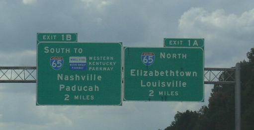 Like interstates, the exits are numbered. The entire has not route number marked on it. The MLC Bluegrass Pkwy. crosses any interstate. Interstate 65, at Elizabethtown.