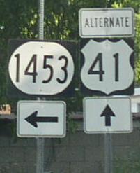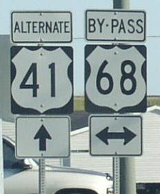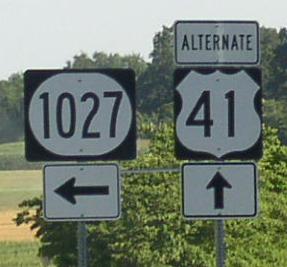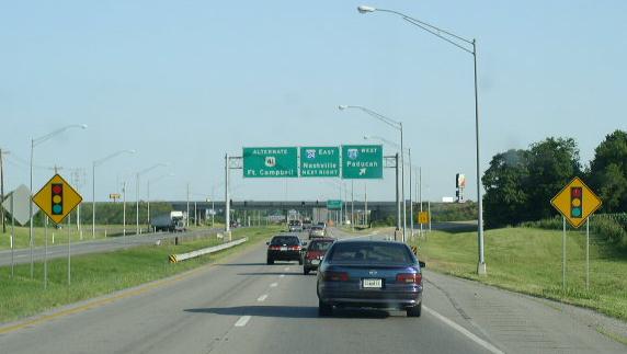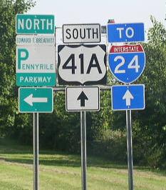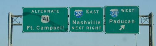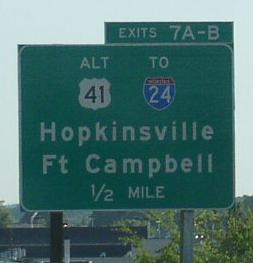 BGS on SB Pennyrile. SB ALT. U.S. Rt. 41 on the southside of Hopkinsville. SB route marker. SB ALT. U.S. Rt. 41 near KY Sec 1027. SB ALT. U.S. Rt. 41 at I-24. BGS over SB ALT. U.S. Rt. 41 at I-24.