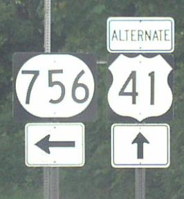 Alternate U.S. Federal Route 41 runs due south from Hopkinsville to Tennessee. This is the main route connecting Hopkinsville and Interstate 24 to Fort Campbell, and each other. ALT. U.S. Rt. 41 passes through the following towns in Christian County. Hopkinsville Masonville Oak Grove ALT. U.S. Rt. 41 is multi-plexed in Christian County. Kentucky State Route 380, at Hopkinsville. ALT. U.S. Rt. 41 intersects the following highways in Christian County. U.S. Rt. 41, at Hopkinsville. U.S. Rt. 68, at Hopkinsville. Kentucky State Route 80, at Hopkinsville. Kentucky State Route 109, at Hopkinsville. Kentucky State Route 380, at Hopkinsville. Kentucky State Route 380, at Hopkinsville. Edward T. Breathitt Pennyrile Parkway, at Hopkinsville.