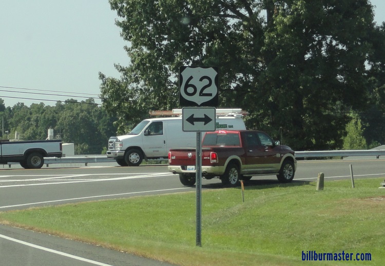 U.S. Federal Route 62 runs east-west across Northern Marshall County. This is one of the main highways in the Kentucky Lake region. U.S. Rt. 62 passes through the following town in Marshall County. Possum Trot Calvert City U.S. Rt. 62 is multi-plexed in Marshall County. U.S. Rt. 641, near Kentucky Lake.