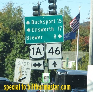 WB U.S. Rt. 1A at I-395. Photo from: Paul Dienhart WB U.S. Rt. 1A in Brewer. Photo from: Paul Dienhart A BGS near Bangor. Photo from: Paul Dienhart A BGS near Bangor. Photo from: Paul Dienhart A BGS near Bangor. Photo from: Paul Dienhart U.S. Rt. 1A/ME St Rt 9 at I-395/ME St Rt 15. Photo from: Paul Dienhart A guide marker near Bangor. Photo from: Paul Dienhart