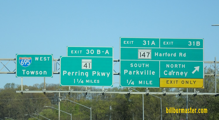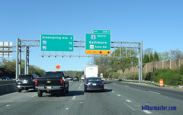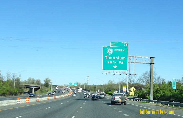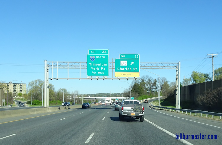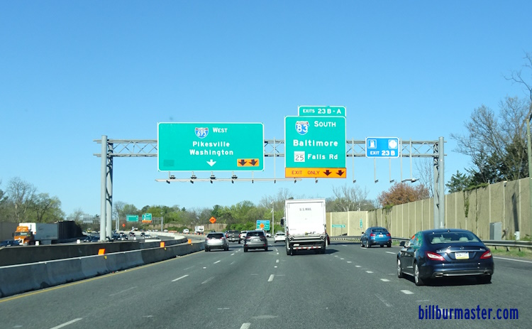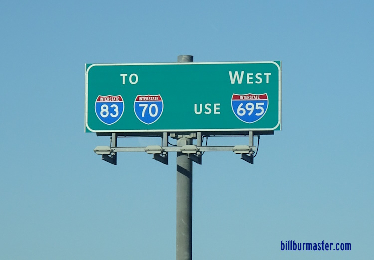 SB I-83/WB I-695 before south I-83. (April, 2025)