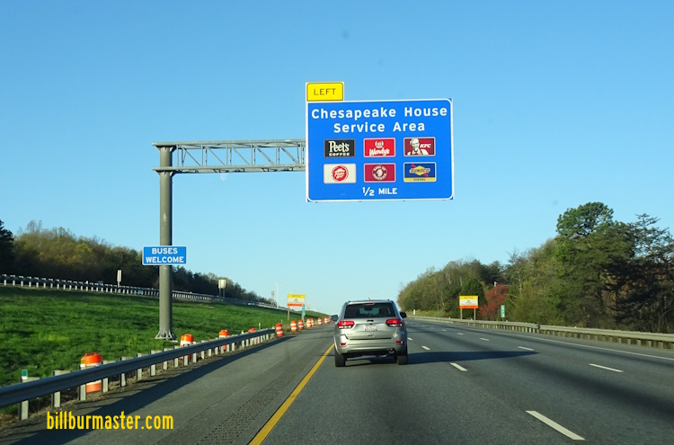 A guide sign for the Chesapeake House Service Area on SB I-95. (April, 2025)
