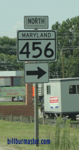 Maryland State Route 456 is a north-south highway in Southern Queen Anne's County. It runs near Queenstown. MD St Rt 456 passes through the following town in Queen Anne's County. Queenstown MD St Rt 456 is not multi-plexed in Queen Anne's County. MD St Rt 456 intersects the following highways in Queen Anne's County. U.S. Rt. 50, near Queenstown. Maryland State Route 656, near Queenstown. U.S. Rt. 301, near Queenstown. Maryland State Route 18, at Queenstown.