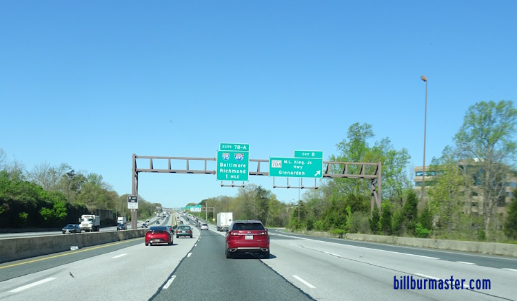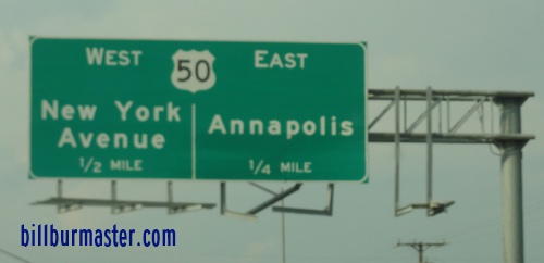 WB U.S. Rt. 50 at the Anne Arundel/Prince George's County Line. WB I-595/U.S. Rt. 50 near MD St Rt 197. WB I-595/U.S. Rt. 50 at MD St Rt 197. WB I-595/U.S. Rt. 50 east of MD St Rt 704. WB I-595/U.S. Rt. 50 at MD St Rt 704. WB I-595/U.S. Rt. 50 west of MD St Rt 704. WB I-595/U.S. Rt. 50 at I-95/495. WB U.S. Rt. 50 at I-95/495. WB U.S. Rt. 50 west of I-95/495. WB U.S. Rt. 50 at MD St Rt 410. WB U.S. Rt. 50 east of MD St Rt 202. A BGS on NB MD St Rt 295. A BGS on NB MD St Rt 295. WB U.S. Rt. 50 west of MD St Rt 295. A guide sign on EB U.S. Rt. 50.