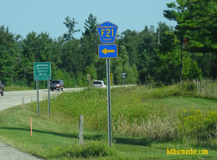 Montmorency County Highway F21 is a highway in Eastern Montmorency County. It runs near Hillman.