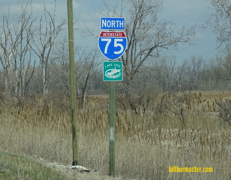 NB I-75 at the Michigan Welcome Sign. (October, 2012) NB I-75 at the Michigan Welcome Sign. (April, 2025) A guide marker on NB I-75. SB I-75 south of Summit Street. SB I-75 at Summit Street. SB I-75 south of Luna Pier. A BGS on Luna Pier Road. NB I-75 north of the Ohio/Michigan State Line. A guide marker on the ramp at exit 18. A guide marker on the ramp at exit 18. NB I-75 south of I-275. NB I-75 in Brownstown Township. NB I-75 at U.S. Rt. 24. NB I-75 in Melvindale. NB I-75 south of Downtown Detroit. NB I-75 near Junction Ave. in Detroit. NB I-75 near Clark Street. NB I-75 near Grand Ave. NB I-75 near Vernon Highway. NB I-75 near Michigan Ave. NB I-75 near Trumbull Street. NB I-75 near M.P. 49. A guide marker south of Downtown Detroit. NB I-75 in Downtown Detroit. A guide marker in Downtown Detroit. BGS in Downtown Detroit. NB I-75 north of I-94.