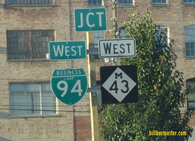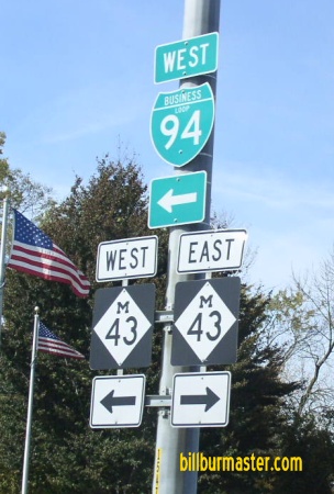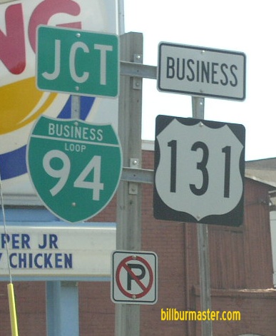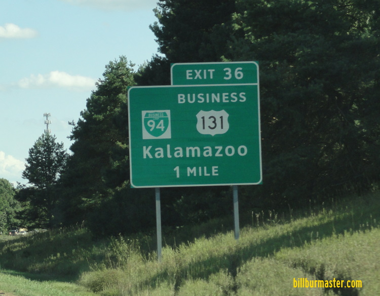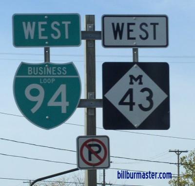 Former Business Loop Interstate 94 connects Downtown Kalamazoo with Interstate 94. This use to run falong U.S. Rt. 131, north of I-94 at exit 74B to Stadium Drive. At Stadium Drive it ran east with BUSN U.S. Rt. 131, to Downtown Kalamazoo. In Downtown Kalamazoo it ran along with Michigan State Route 43. East of Downtown Kalamazoo BUSN Loop I-94 ran along Kings Highway to Michigan State Route 96, before the Kalamazoo River. Then it headed southeast-east to rejoin I-94 at Exit 81.