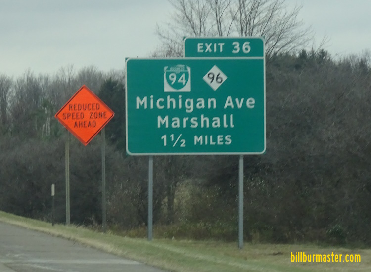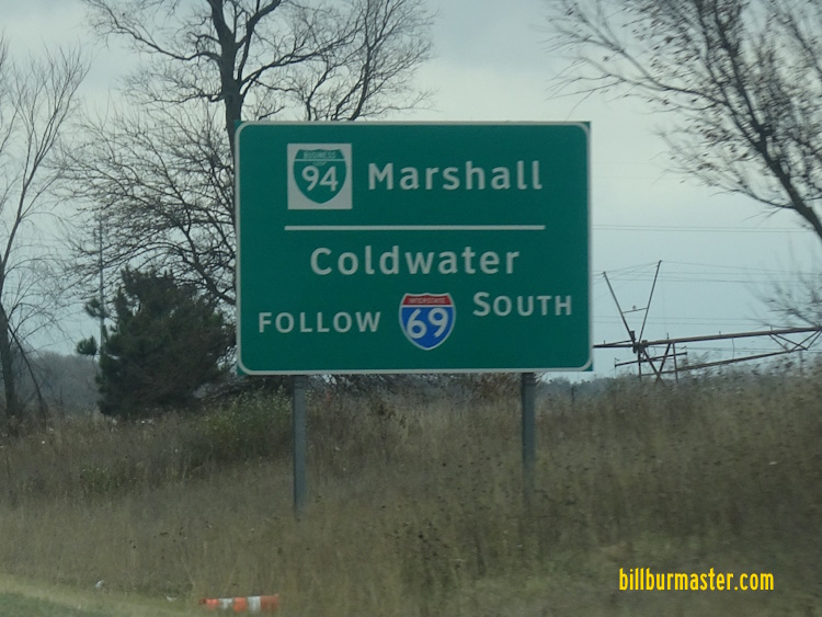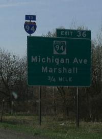 A BGS on WB I-94. EB BUSN Loop I-94 east of Kalamazoo Street. A guide marker in Marshall. A guide marker in Marshall. WB BUSN Loop I-94 in Marshall. EB BUSN Loop I-94 east of MI St Rt 227. A BGS on SB I-69. A BGS on SB I-69/EB BUSN Loop I-94. A BGS on SB I-69/EB BUSN Loop I-94. A BGS on NB I-69. A BGS on EB I-94.