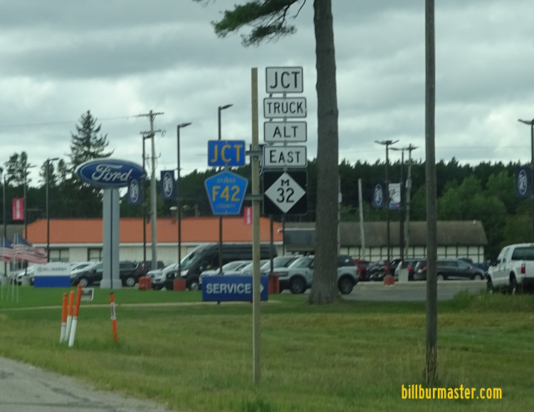 TRUCK-ALT Michigan State Route 32 runs south-south east of the Gaylord Area in Central Otsego County. It follows Mc Coy Road from Michigan State Route 32, southeast of Gaylord, west into Gaylord. At BUSN Loop I-75, it continues west on Milbocker Road. Southwest of Gaylord, at Townline Road, it heads north to end at Michigan State Route 32, on the west side of Gaylord. TK-ALT MI St Rt 32 passes through the following towns in Otsego County. Gaylord TK-ALT MI St Rt 32 is not multi-plexed in Otsego County. TK-ALT MI St Rt 32 crosses the following highways in Otsego County. Michigan State Route 32, near Gaylord. BUSN Loop I-75, at Gaylord. Interstate 75, at Gaylord. (NO Interchange) Michigan State Route 32, near Gaylord.