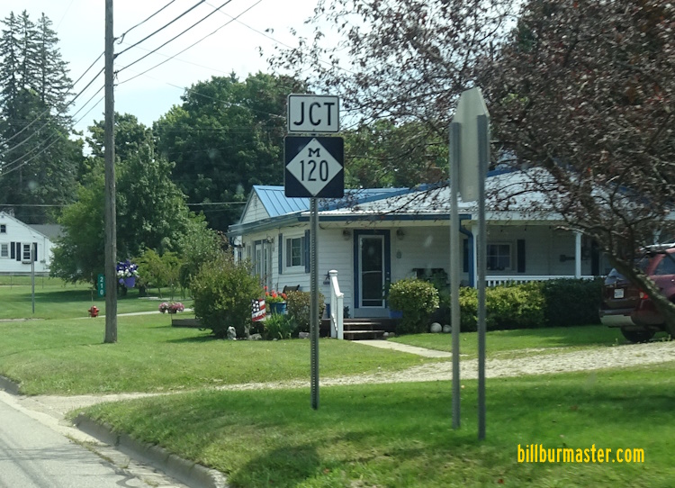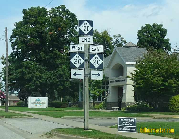 A junction marker on EB MI St Rt 20. NB MI St Rt 120 at MI St Rt 20. The northern end of MI St Rt 120. The northern end marker. SB MI St Rt 120 south of MI St Rt 20. SB MI St Rt 120 south of Hesperia.
