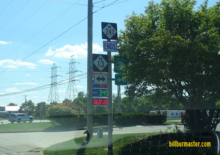 Branches of MI St Rt 13 in Bay County. A guide sign on NB MI St Rt 84. A junction marker on EB BUSN Spur I-75/MI St Rt 25. NB MI St Rt 13 north of Wilder Road. NB MI St Rt 13 south of MI St Rt 247. A guide marker on SB MI St Rt 247.