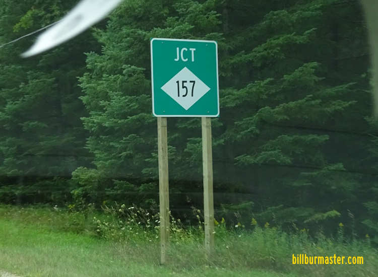 A junction marker on SB MI St Rt 18. SB MI St Rt 157 at MI St Rt 18.