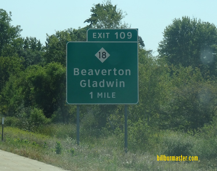 A BGS on EB U.S. Rt. 10. NB MI St Rt 18 north of Curtis Road. SB MI St Rt 18 at the Gladwin/Midland County Line.