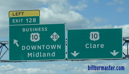 MI St Rt 20 is multi-plexed in Midland County. BUSN U.S. Rt. 10, at Midland.