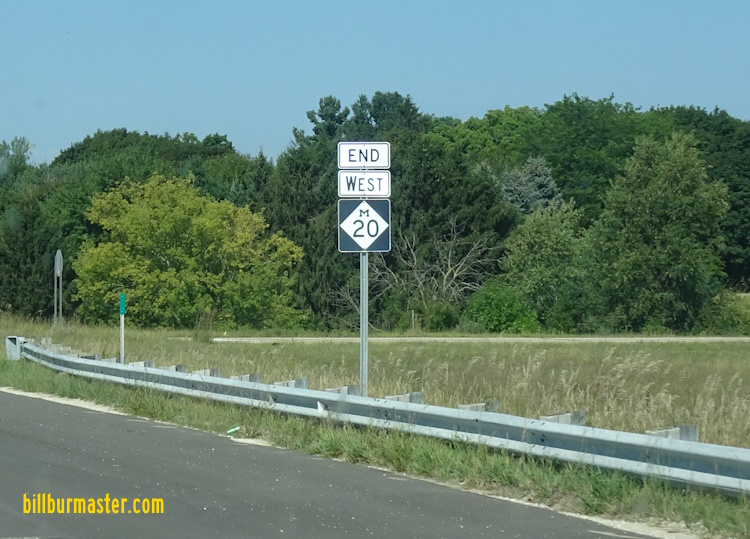 The western end of MI St Rt 20. The western end marker. A BGS on NB U.S. Rt. 31. A guide marker on the ramp from NB U.S. Rt. 31. EB MI St Rt 20 east of U.S. Rt. 31. A guide marker on NB Oceana Drive. EB MI St Rt 20 east of New Era. EB MI St Rt 20 at the White River. EB MI St Rt 20 at 192nd Ave. EB MI St Rt 20 west of Hesperia. EB MI St Rt 20 near Munn. WB MI St Rt 20 at the Oceana/Newaygo County Line.