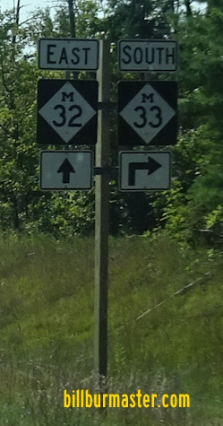 Branches of MI St Rt 32 in Montmorency County. WB MI St Rt 32 west of Atlanta. WB MI St Rt 32 west of north MI St Rt 33. A junction marker on SB MI St Rt 33. WB MI St Rt 32/NB MI St Rt 33 east of north MI St Rt 33. EB MI St Rt 32/SB MI St Rt 33 east of Atlanta. EB MI St Rt 32/SB MI St Rt 33 near Haas Road. EB MI St Rt 32/SB MI St Rt 33 at the 45th Parallel. A junction marker on EB MI St Rt 32/SB MI St Rt 33. EB MI St Rt 32/SB MI St Rt 33 at east MI St Rt 32. EB MI St Rt 32 east of south MI St Rt 33. EB MI St Rt 32 near Ulshaffer Road. EB MI St Rt 32 south of Hillman. EB MI St Rt 32 east of Hillman. WB MI St Rt 32 at the Montmorency/Alpena County Line.