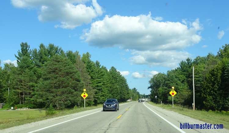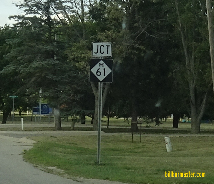 A junction marker on NB MI St Rt 18. NB MI St Rt 18/EB MI St Rt 61 east of south MI St Rt 18. NB MI St Rt 18/EB MI St Rt 61 at Arcade Street. NB MI St Rt 18/EB MI St Rt 61 at Silverleaf Street. EB MI St Rt 61 near State Street. EB MI St Rt 61 west of James Roberts Drive. EB MI St Rt east of Gladwin. EB MI St Rt 61 west of MI St Rt 30. EB MI St Rt 61 at MI St Rt 30.