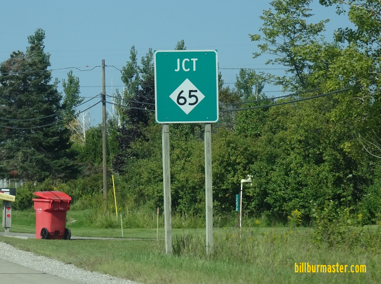 A junction marker on EB MI St Rt 32. A junction marker on EB MI St Rt 32/NB MI St Rt 65. EB MI St Rt 32/NB MI St Rt 65 near Lachine. A junction marker on WB MI St Rt 32. NB MI St Rt 65 north of east MI St Rt 32. NB MI St Rt 65 at Thunder Bay River. NB MI St Rt 65 near Long Rapids. NB MI St Rt 65 near Thorne Road. NB MI St Rt 65 near Greenwood Road. NB MI St Rt 65 near Maple Lane Road. NB MI St Rt 65 near the Northern Branch Thunder Bay River. SB MI St Rt 65 at the Alpena/Presque Isle County Line.
